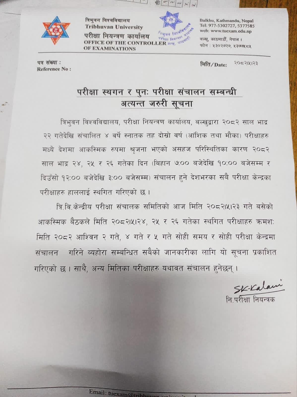 Extremely Urgent Notice Regarding Postponement of Examinations NOTICE!! September 9, 2025, by primeca