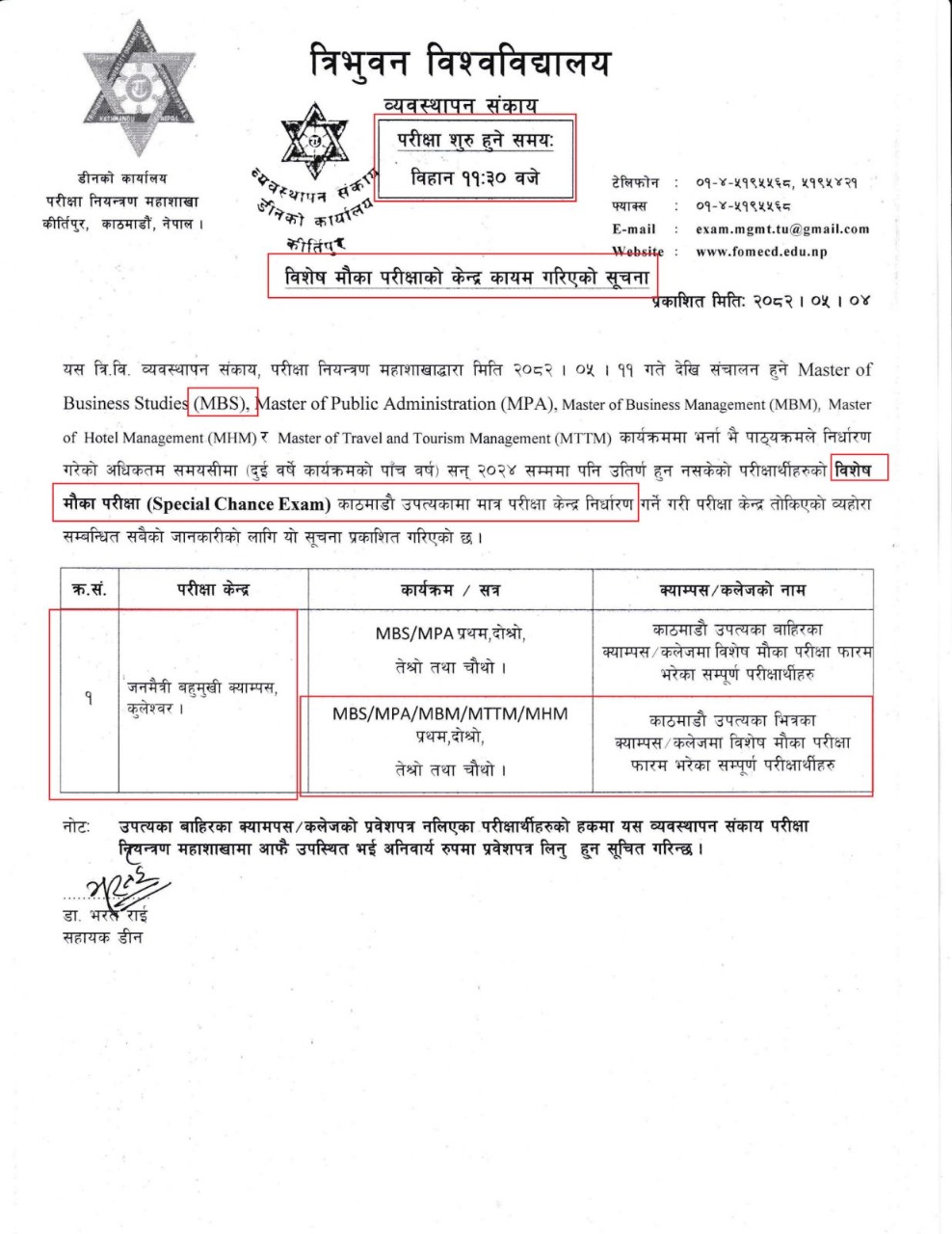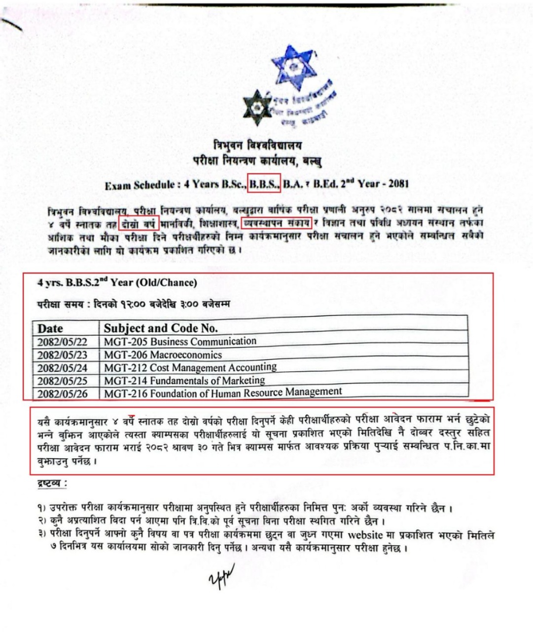 BBS 2nd year Exam Routine (Old/Chance) – 2082