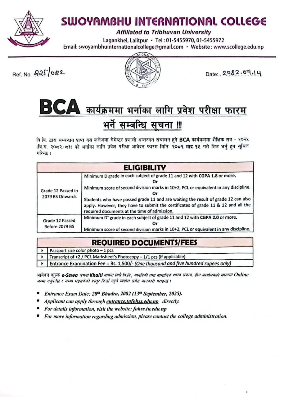 BCA ENTRANCE EXAM FORM OPEN-NOTICE
