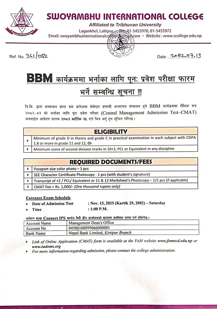 BBS 2nd Year Partial exam center – Notice !!!Read moreBCA Entrance Exam Center – Notice !!!Read moreMBS Chance Exam – NOTICE !!!Read moreRe-CMAT Entrance Exam for BBM – Notice !Read moreBBS 2nd Year Exam (OLD) – NOTICE!!!Read moreMBS Special Chance Exam – NOTICE !!!Read moreBBS 2nd Year Exam (NEW) – NOTICE!!!Read moreBBS Chance exam – NOTICE!Read moreNOTICE for BCA Entrance Exam!Read moreCAP-II, Final Scholarship Test NoticeRead more