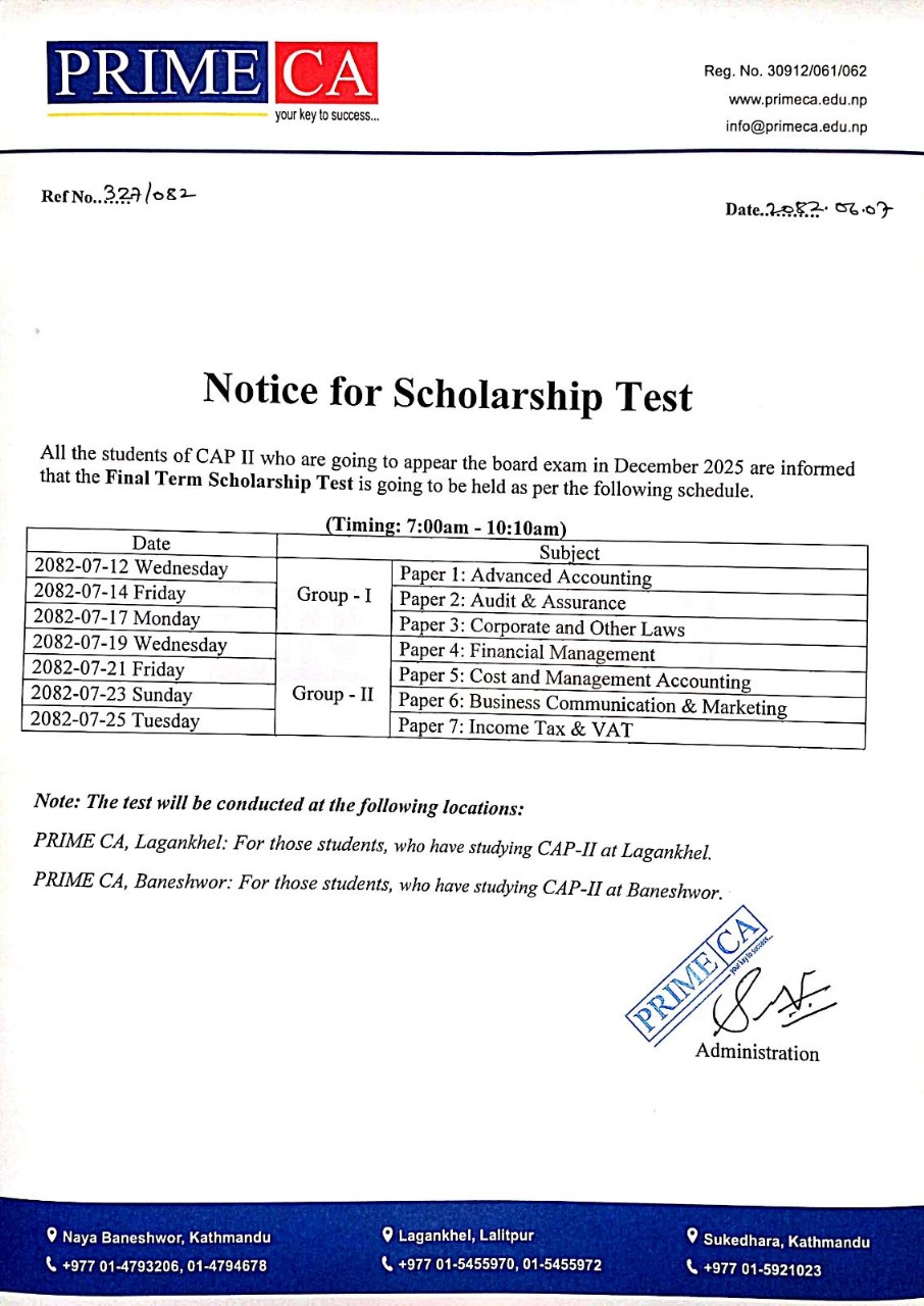 CAP-II, Final Scholarship Test Notice